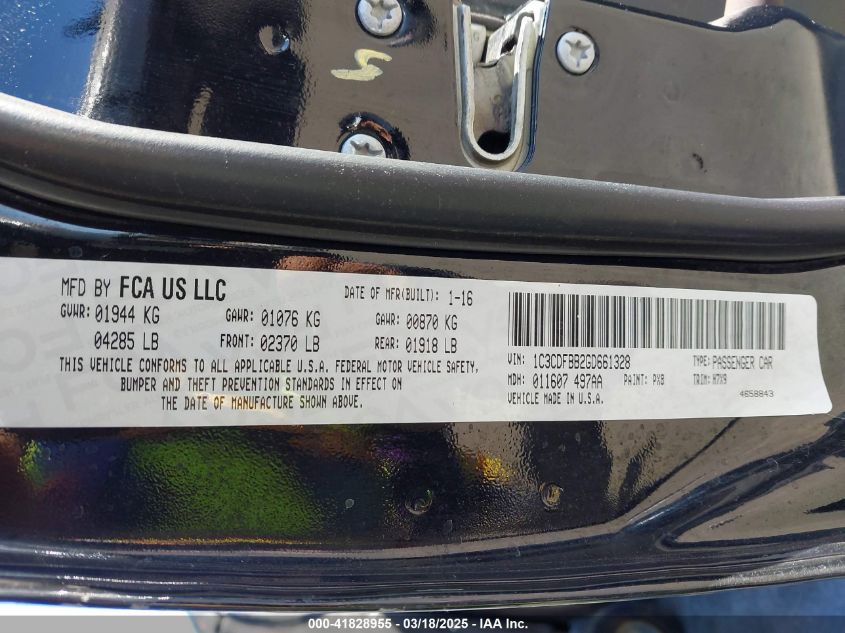Цвет ЧерныйЦилиндры 4Привод Передний приводVIN 1C3CDFBB2GD661328Состояние СтационарноПовреждение По бокам