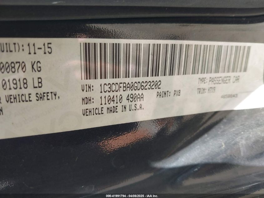 DODGE DART 2.0 2016 г.в., Передний привод (1C3CDFBA0GD623202) из США