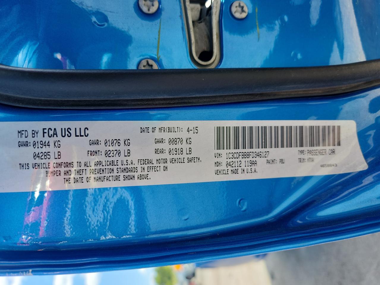 DODGE DART 2.4 2015 г.в., (1C3CDFBB8FD346127) из США