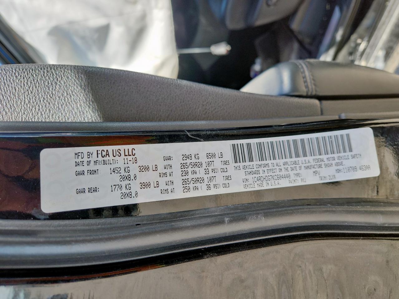Цвет ЧерныйЦилиндры 6Привод Задний приводVIN 1C4RDHDG7KC604440Состояние ЗаводитсяПовреждение Передняя или задняяДата аукциона 2025-11-03