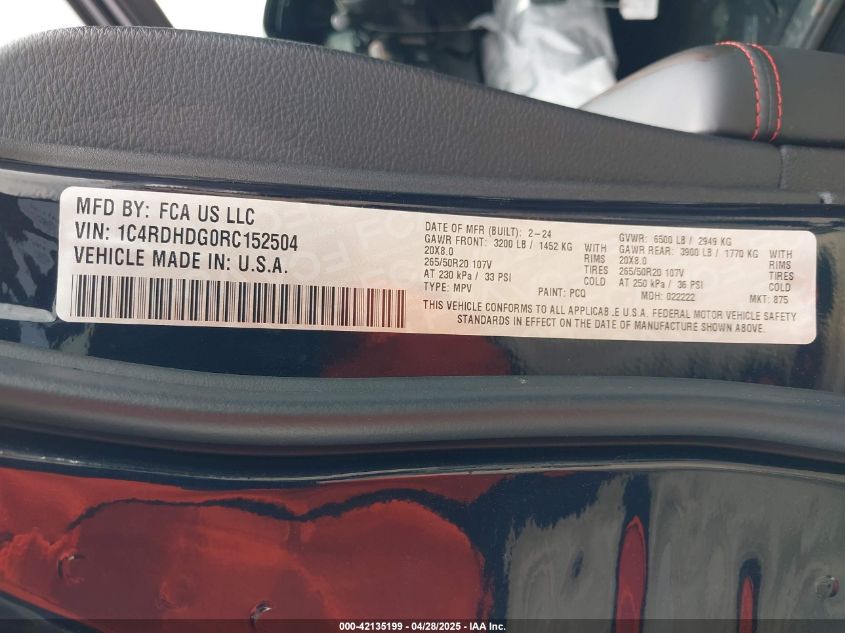 DODGE DURANGO 3.6 2024 г.в., (1C4RDHDG0RC152504) из США