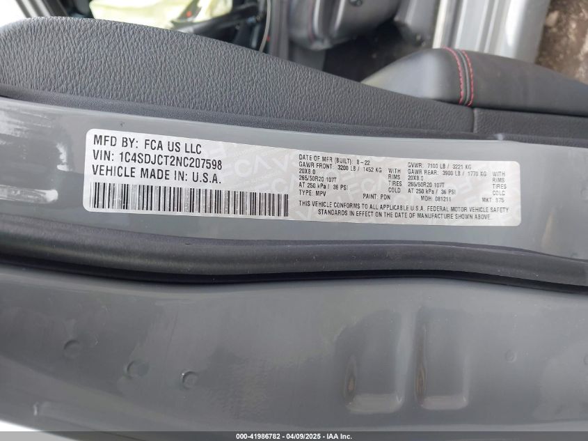 Цвет СерыйЦилиндры 8Привод Полный приводVIN 1C4SDJCT2NC207598Состояние СтационарноПовреждение Передняя или задняяДата аукциона 2025-11-05