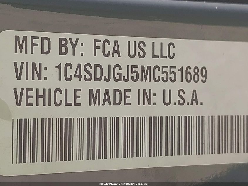 DODGE DURANGO 6.4 2021 г.в., Полный привод (1C4SDJGJ5MC551689) из США