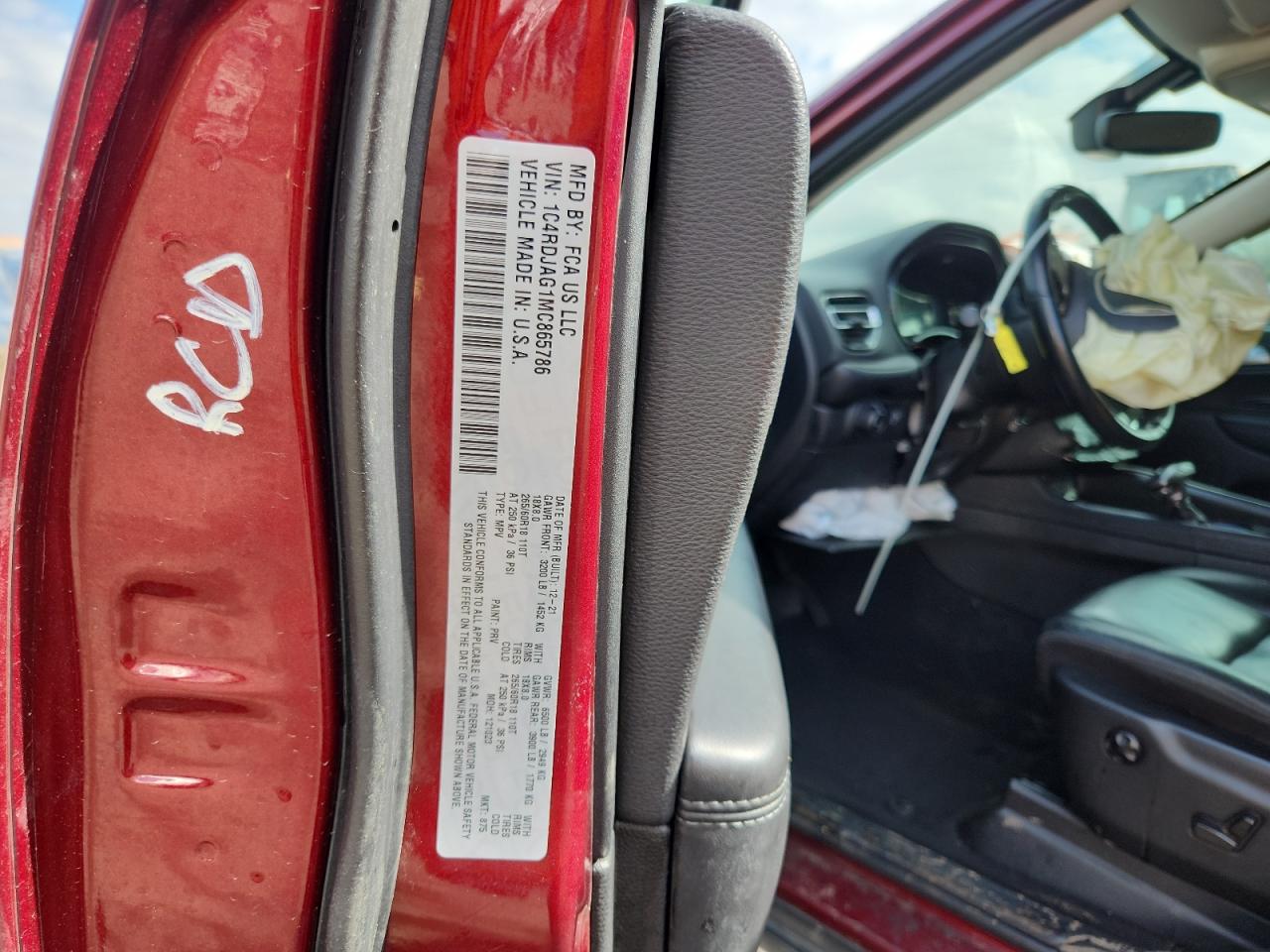 DODGE DURANGO 3.6 2021 г.в., Полный привод (1C4RDJAG1MC865786) из США
