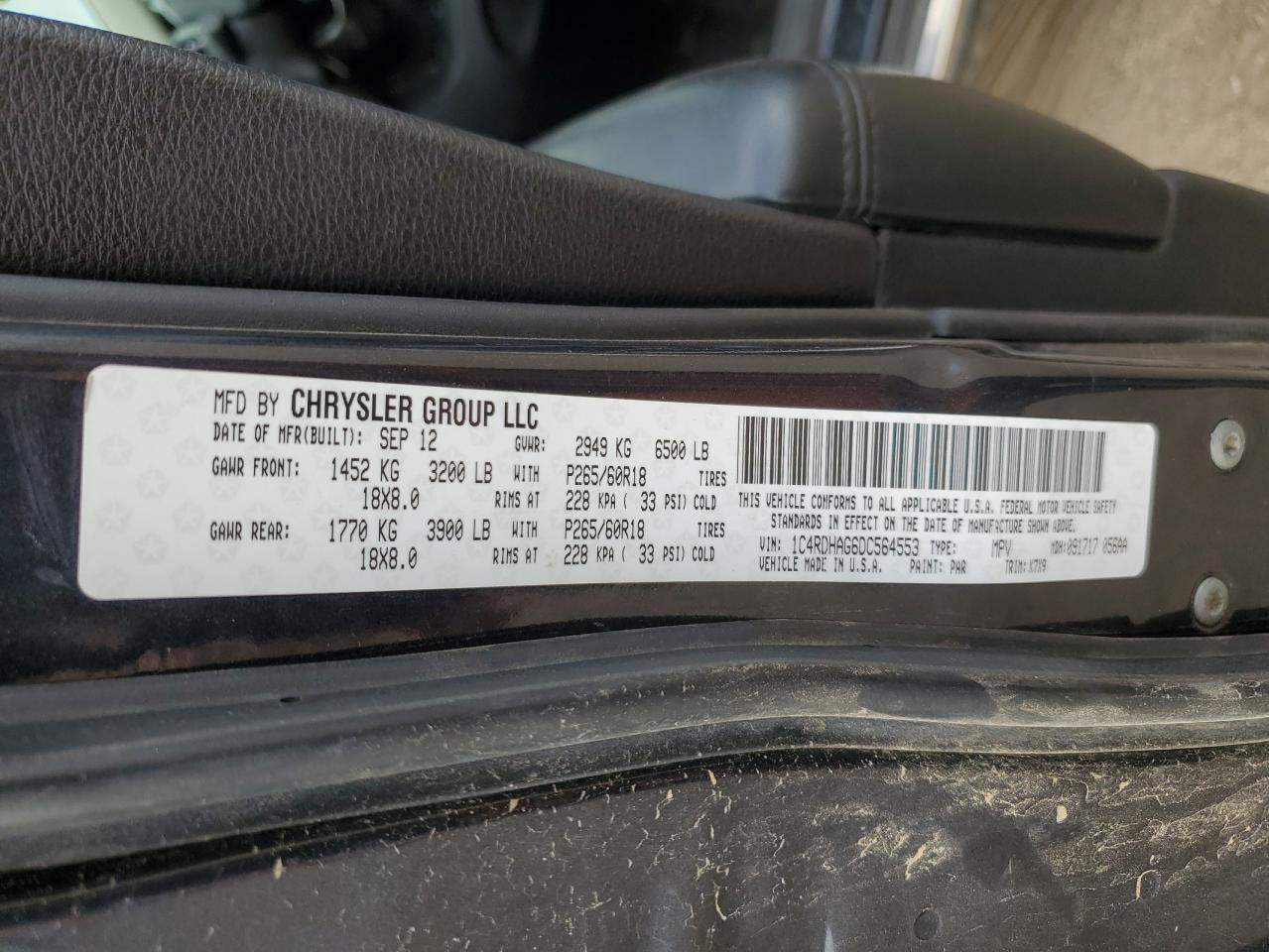 DODGE DURANGO 3.6 2013 г.в., Задний привод (1C4RDHAG6DC564553) из США