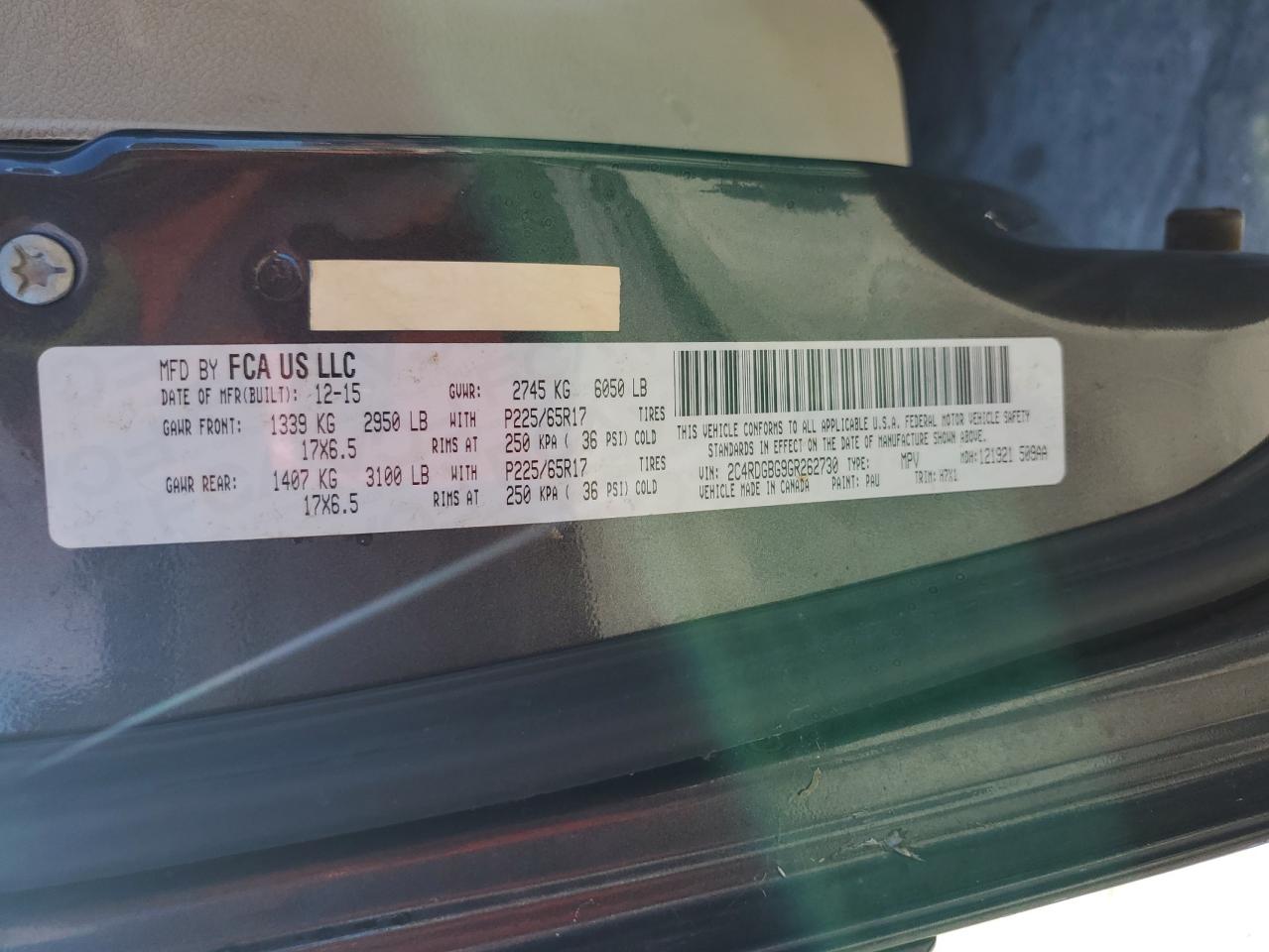 DODGE GRAND CARAVAN 3.6 2016 г.в., (2C4RDGBG9GR262730) из США