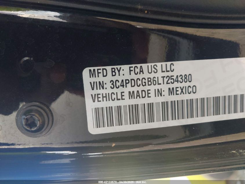 DODGE JOURNEY 2.4 2020 г.в., Передний привод (3C4PDCGB6LT254380) из США