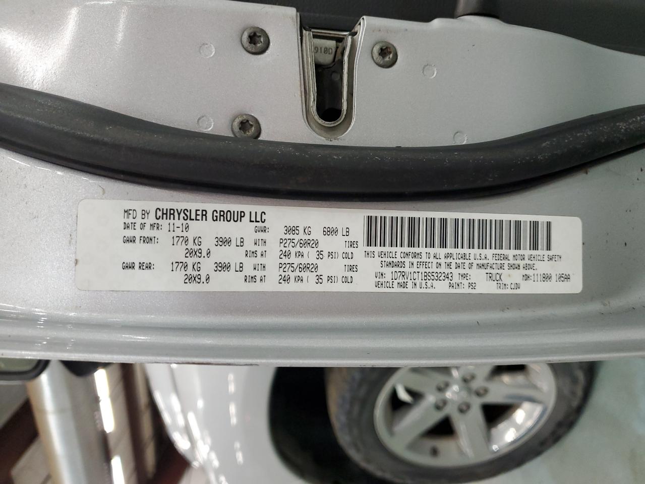 Цвет СеребряныйЦилиндры 8Привод 4x4 с задним приводомVIN 1D7RV1CT1BS532343Состояние Заводится и едет (проверено)Повреждение ЗадняяДата аукциона 2025-11-13