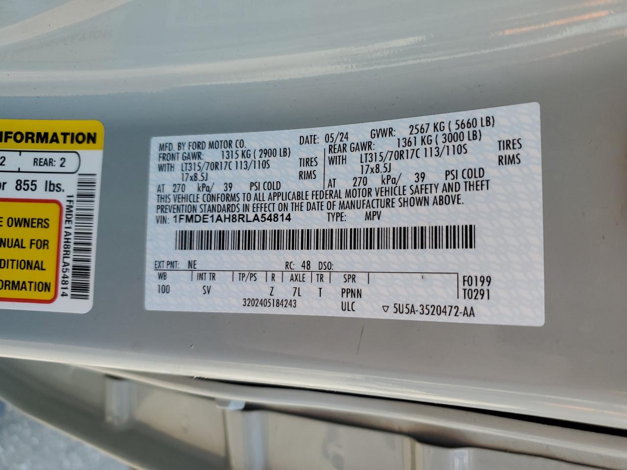 Цвет СерыйЦилиндры 4Привод 4x4 с задним приводомVIN 1FMDE1AH8RLA54814Состояние Заводится и едет (проверено)Повреждение Передняя или задняя