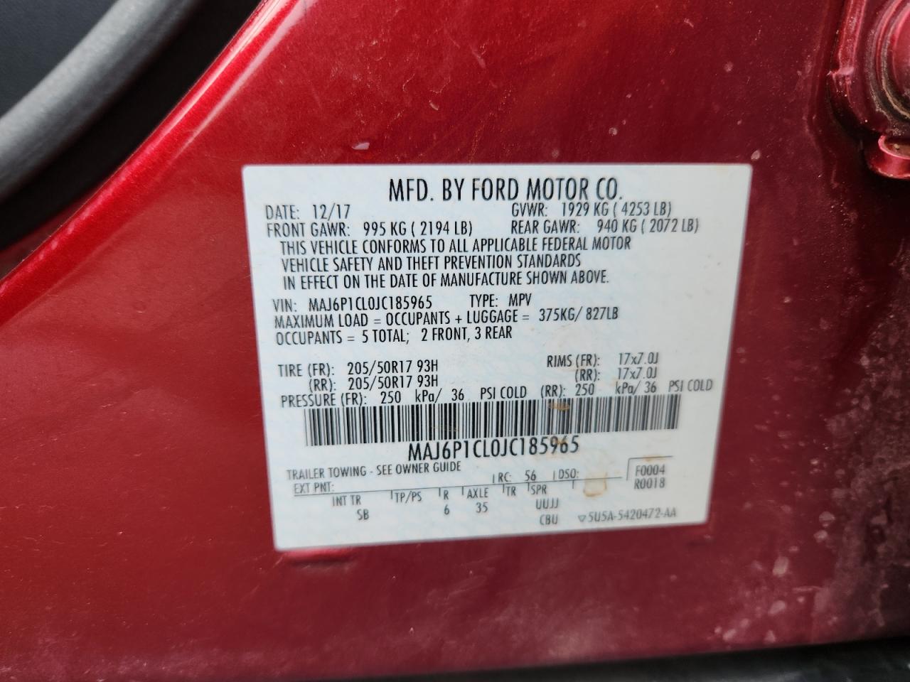 FORD ECOSPORT 2.0 2018 г.в., 4x4 с передним приводом (MAJ6P1CL0JC185965) из США