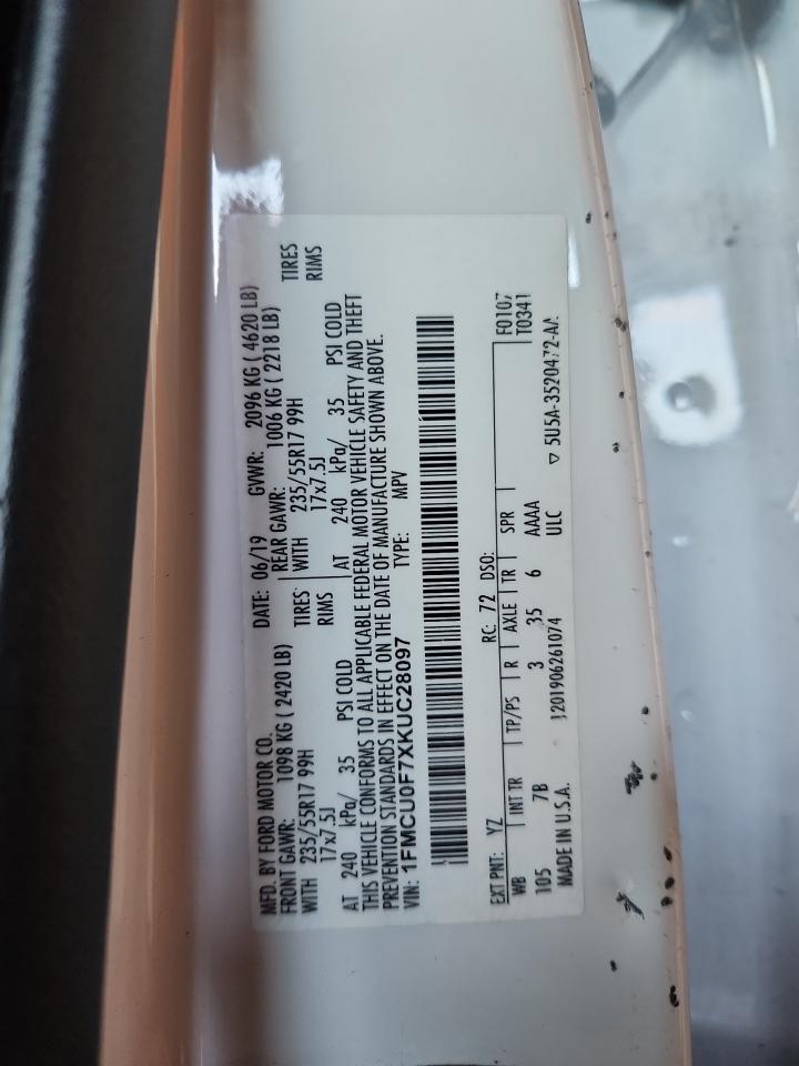 FORD ESCAPE 2.5 2019 г.в., (1FMCU0F7XKUC28097) из США
