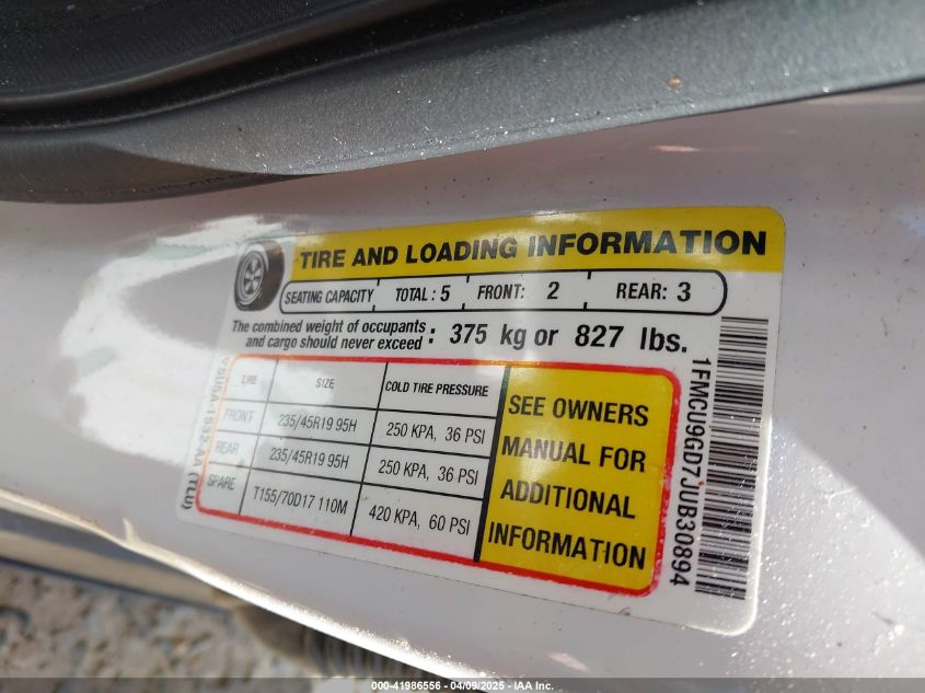 Цвет БелыйЦилиндры 4Привод Полный приводVIN 1FMCU9GD7JUB30894Состояние СтационарноПовреждение Левая сторонаДата аукциона 2025-11-10
