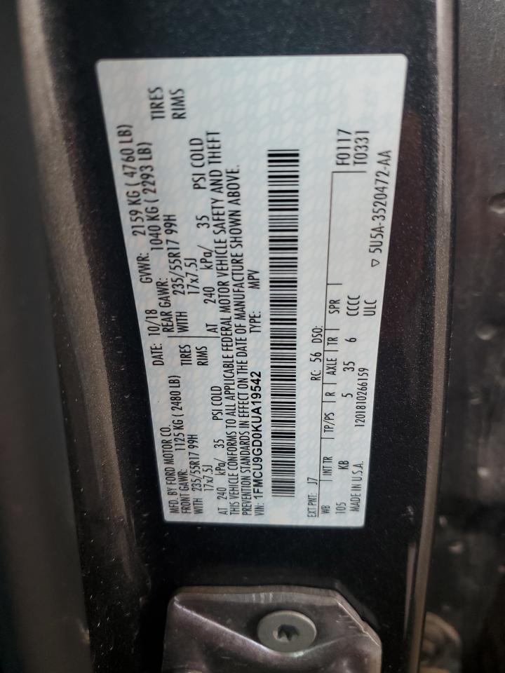 FORD ESCAPE 1.5 2019 г.в., 4x4 с передним приводом (1FMCU9GD0KUA19542) из США