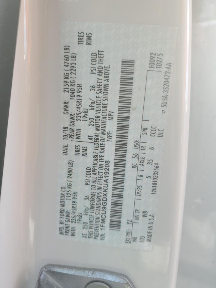 FORD ESCAPE 1.5 2019 г.в., 4x4 с передним приводом (1FMCU9GDXKUA19208) из США