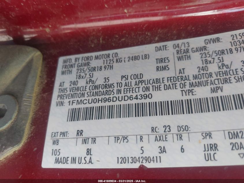 FORD ESCAPE 2.0 2013 г.в., Передний привод (1FMCU0H96DUD64390) из США