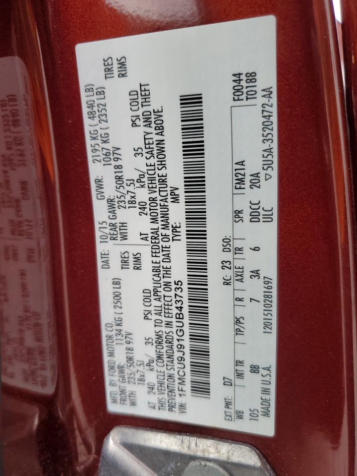 FORD ESCAPE 2.0 2016 г.в., 4x4 с передним приводом (1FMCU9J91GUB43735) из США