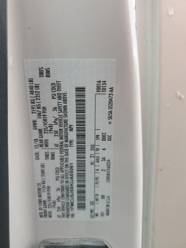 FORD ESCAPE 2.0 2019 г.в., 4x4 с передним приводом (1FMCU9J9XKUA65061) из США