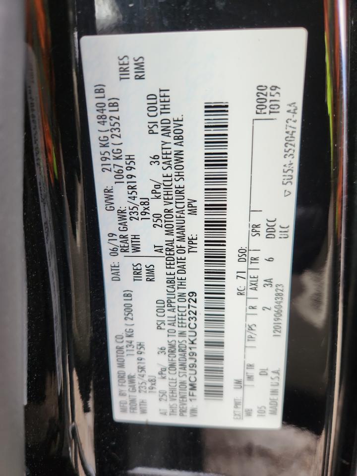 FORD ESCAPE 2.0 2019 г.в., 4x4 с передним приводом (1FMCU9J91KUC32729) из США