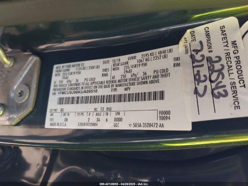 FORD ESCAPE 2.0 2019 г.в., Полный привод (1FMCU9J98KUA09510) из США