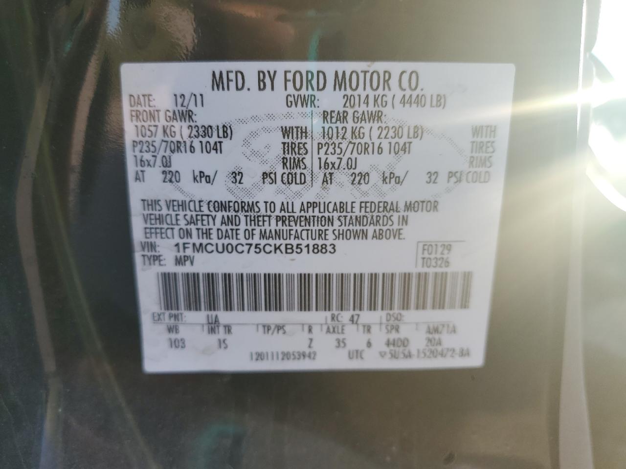FORD ESCAPE 2.5 2012 г.в., (1FMCU0C75CKB51883) из США