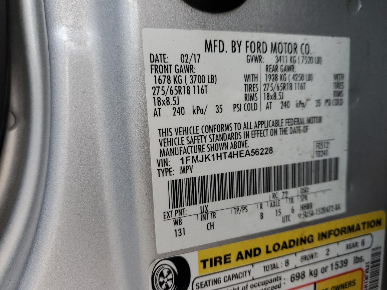 FORD EXPEDITION 3.5 2017 г.в., Задний привод (1FMJK1HT4HEA56228) из США