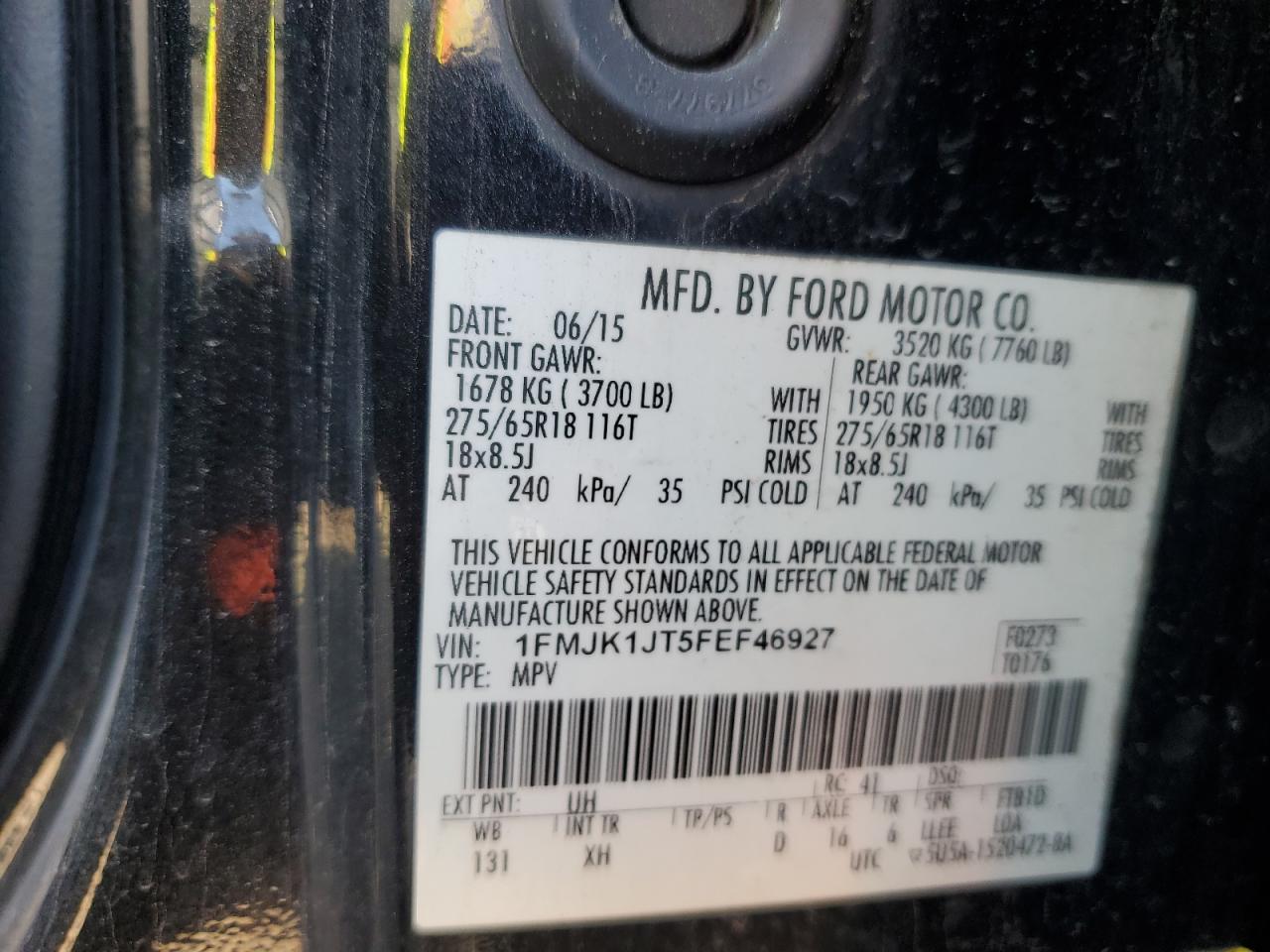 FORD EXPEDITION 3.5 2015 г.в., 4x4 с задним приводом (1FMJK1JT5FEF46927) из США