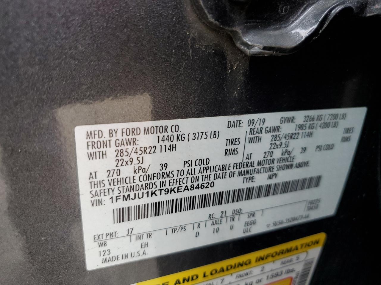 Цвет Древесный угольЦилиндры 6Привод Задний приводVIN 1FMJU1KT9KEA84620Состояние Заводится и едет (проверено)Повреждение Передняя или задняя