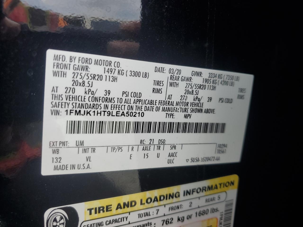 FORD EXPEDITION 3.5 2020 г.в., Задний привод (1FMJK1HT9LEA50210) из США
