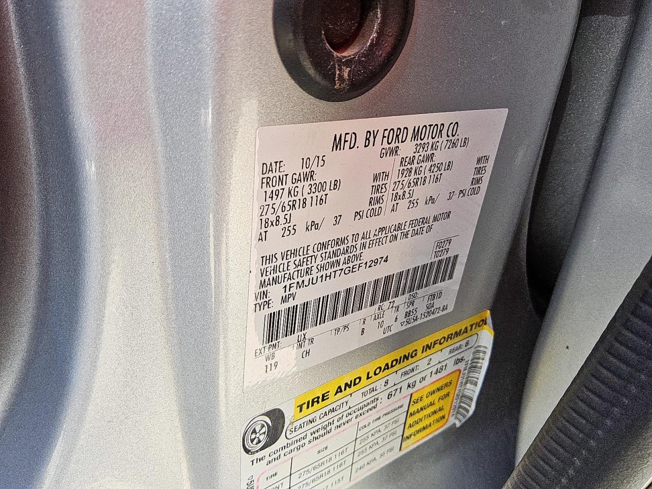 Цвет СеребряныйЦилиндры 6Привод Задний приводVIN 1FMJU1HT7GEF12974Состояние НеизвестноПовреждение Механические поврежденияДата аукциона 2025-11-06