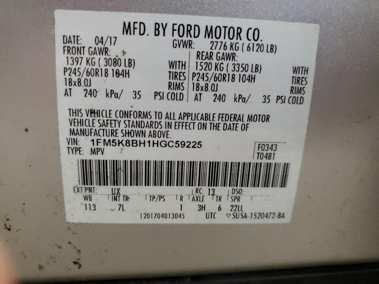 FORD EXPLORER 2.3 2017 г.в., 4x4 с передним приводом (1FM5K8BH1HGC59225) из США