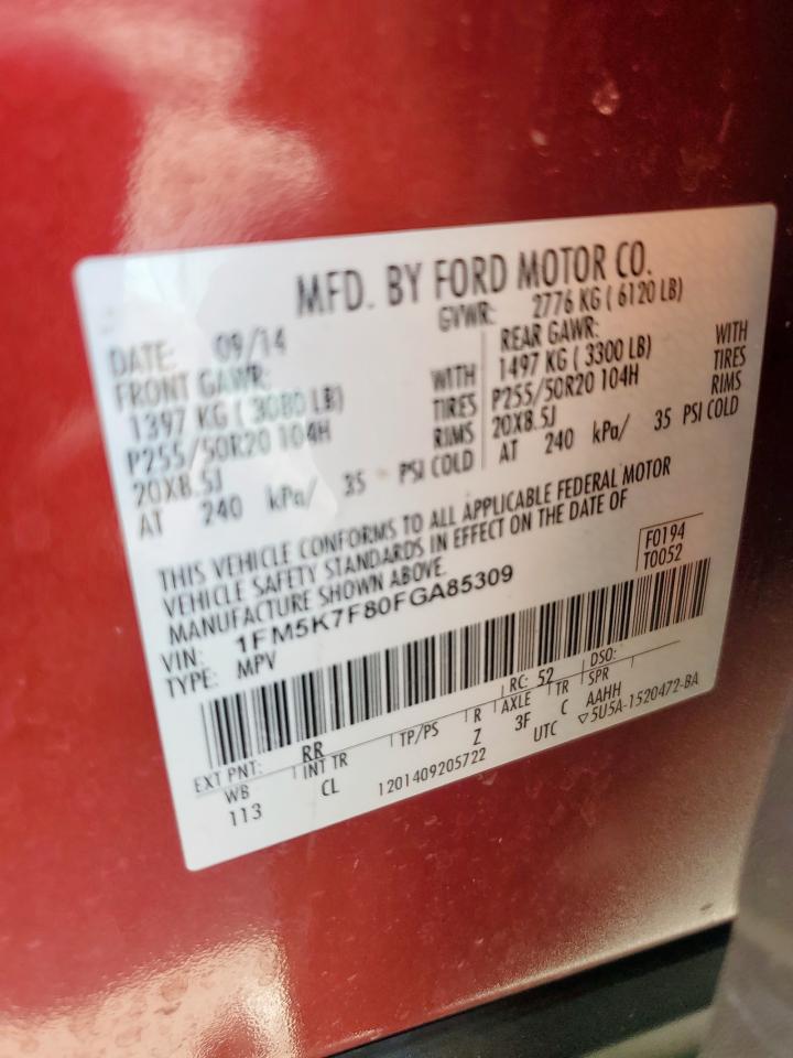 FORD EXPLORER 3.5 2015 г.в., (1FM5K7F80FGA85309) из США