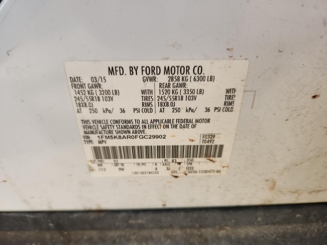 FORD EXPLORER 3.7 2015 г.в., 4x4 с передним приводом (1FM5K8AR0FGC29902) из США