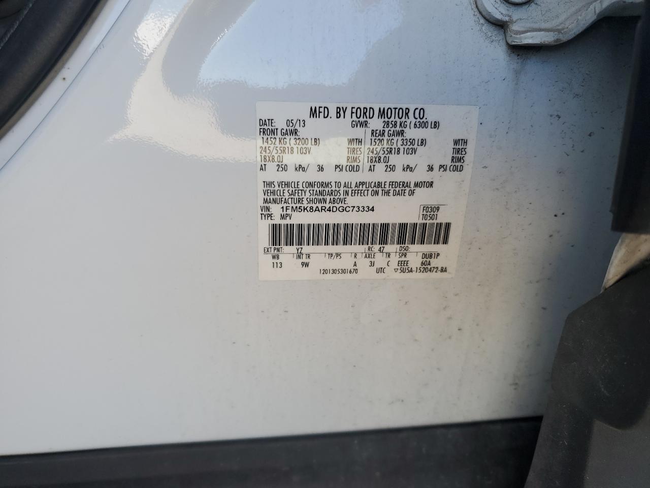 Цвет БелыйЦилиндры 6Привод 4x4 с передним приводомVIN 1FM5K8AR4DGC73334Состояние Заводится и едет (проверено)Повреждение Передняя или задняя