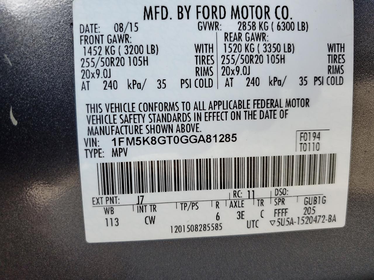 Цвет СерыйЦилиндры 6Привод 4x4 с передним приводомVIN 1FM5K8GT0GGA81285Состояние Заводится и едет (проверено)Повреждение Передняя или задняя