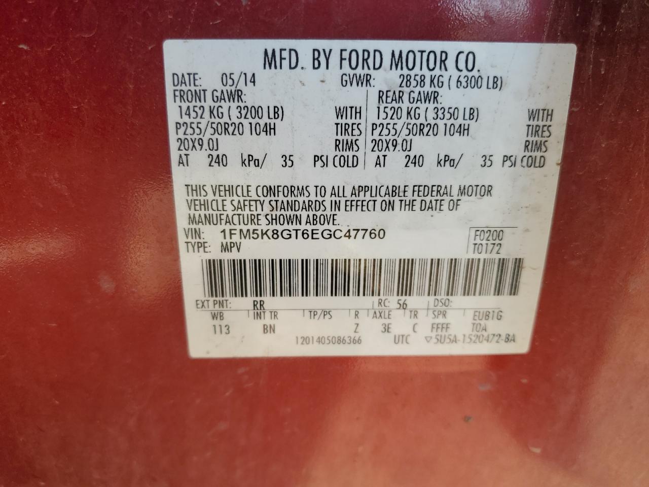 FORD EXPLORER 3.5 2014 г.в., 4x4 с передним приводом (1FM5K8GT6EGC47760) из США