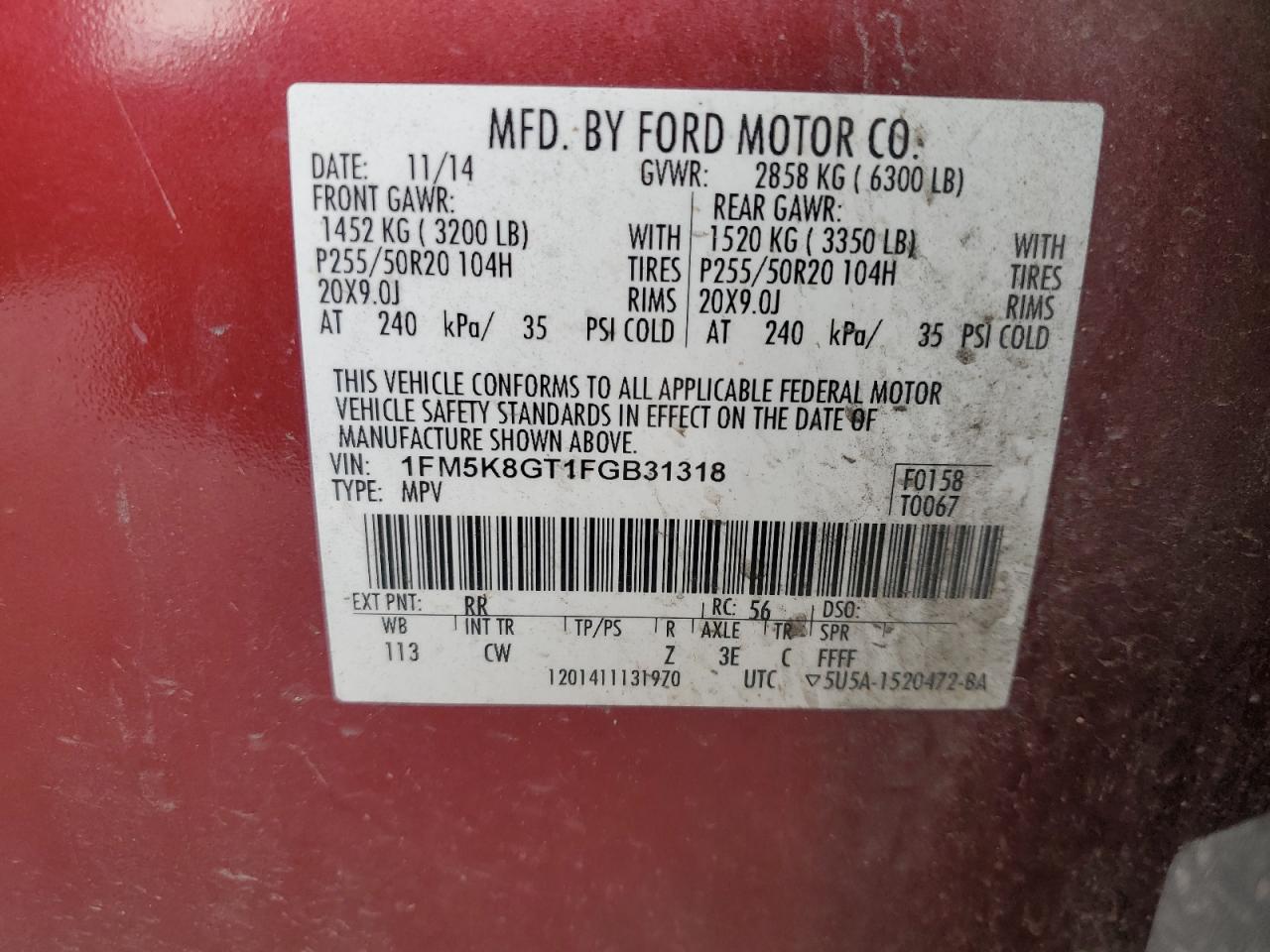 Цвет КрасныйЦилиндры 6Привод 4x4 с передним приводомVIN 1FM5K8GT1FGB31318Состояние Заводится и едет (проверено)Повреждение Передняя или задняя