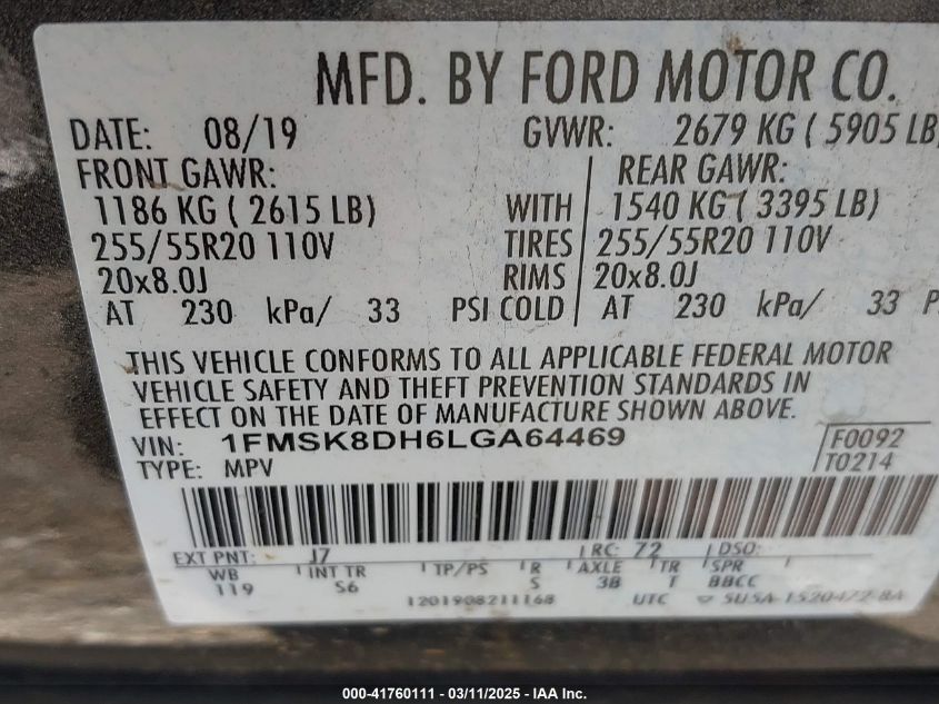 FORD EXPLORER 2.3 2020 г.в., Полный привод (1FMSK8DH6LGA64469) из США
