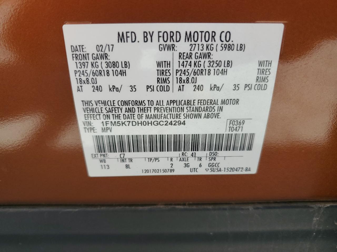 Цвет КоричневийЦилиндры 4VIN 1FM5K7DH0HGC24294Состояние Заводится и едет (проверено)Повреждение НезначительныеДата аукциона 2025-11-03