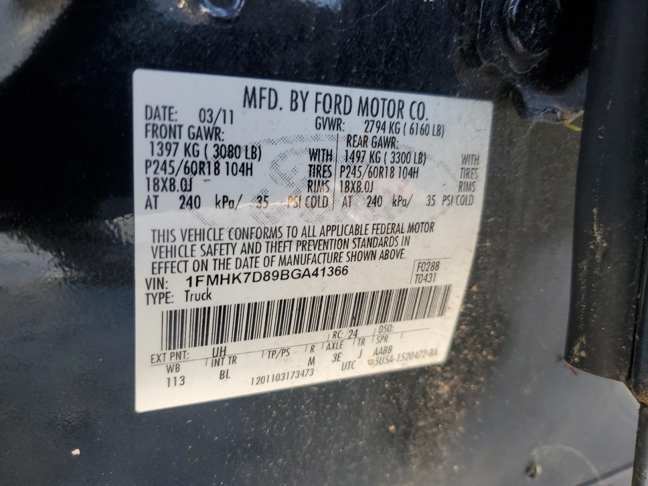 Цвет ЧерныйЦилиндры 6VIN 1FMHK7D89BGA41366Состояние НеизвестноПовреждение Передняя или задняяДата аукциона 2025-11-17