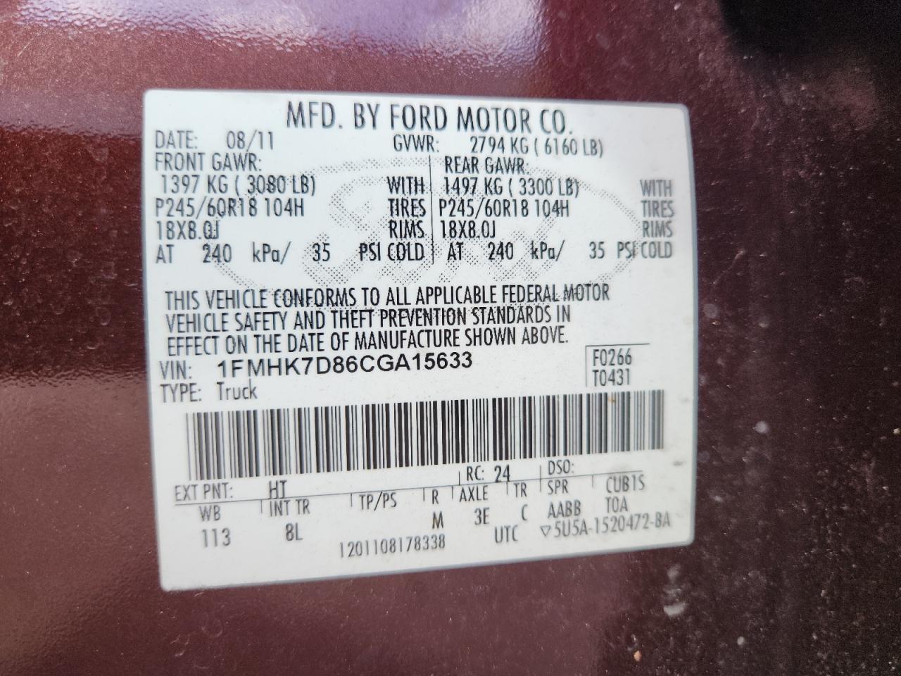Цвет БургундияЦилиндры 6VIN 1FMHK7D86CGA15633Состояние Заводится и едет (проверено)Повреждение По бокам