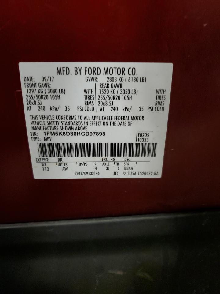 FORD EXPLORER 3.5 2017 г.в., 4x4 с передним приводом (1FM5K8D80HGD97898) из США