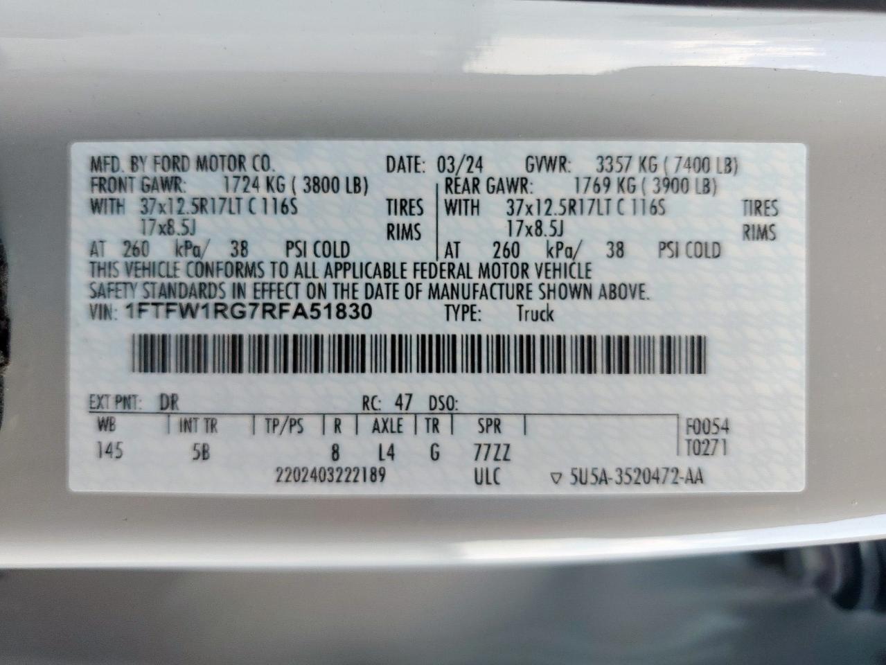 FORD F-150 3.5 2024 г.в., 4x4 с задним приводом (1FTFW1RG7RFA51830) из США