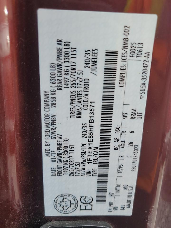 FORD F-150 3.5 2017 г.в., 4x4 с задним приводом (1FTEX1E85HFB13571) из США