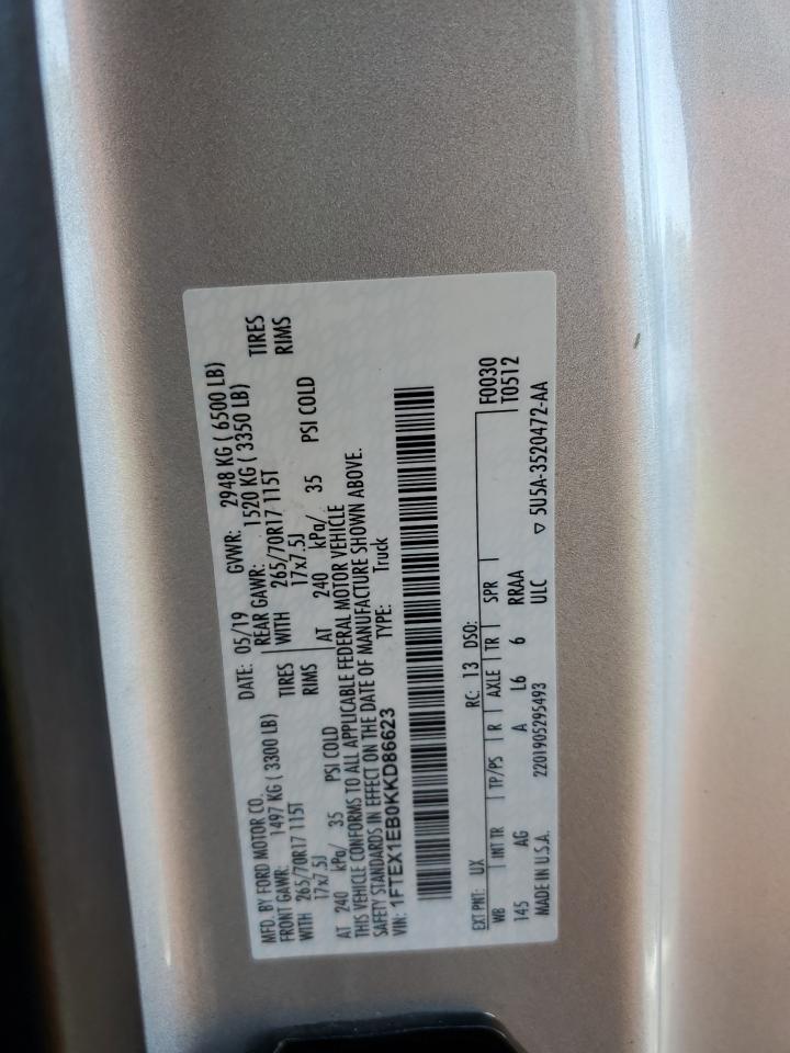 FORD F-150 3.3 2019 г.в., 4x4 с задним приводом (1FTEX1EB0KKD86623) из США