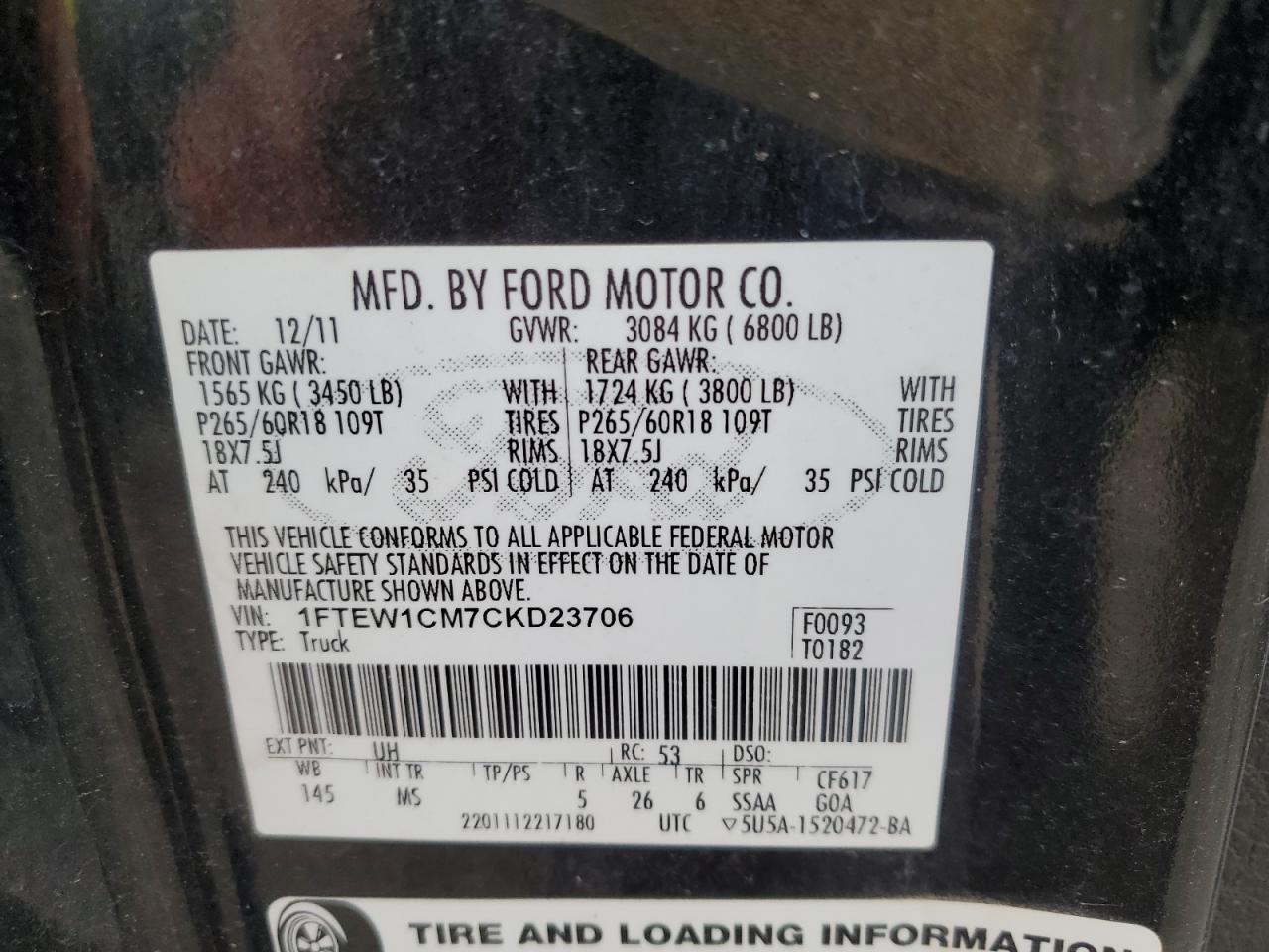 Цвет ЧерныйЦилиндры 6Привод Задний приводVIN 1FTEW1CM7CKD23706Состояние НеизвестноПовреждение Задняя