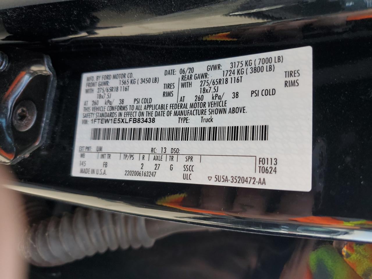 FORD F-150 5.0 2020 г.в., 4x4 с задним приводом (1FTEW1E5XLFB83438) из США
