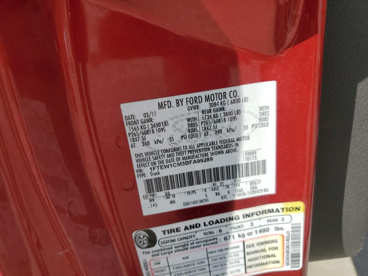 Цвет КрасныйЦилиндры 6Привод Задний приводVIN 1FTEW1CM3BFA99289Состояние Заводится и едет (проверено)Повреждение Рама