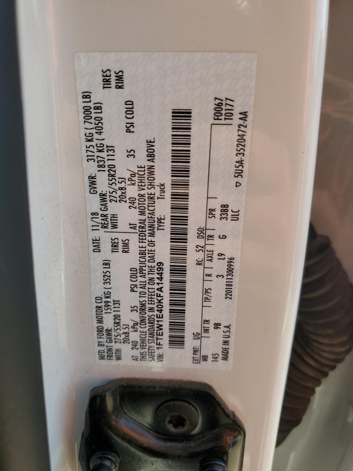 FORD F-150 3.5 2019 г.в., 4x4 с задним приводом (1FTEW1E40KFA14499) из США