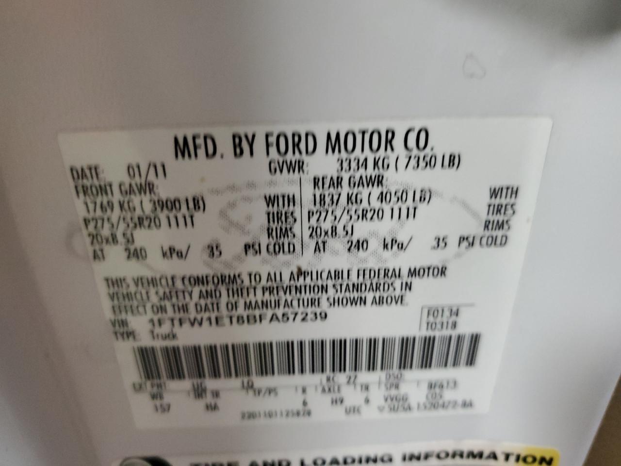 Цвет БелыйЦилиндры 6Привод 4x4 с задним приводомVIN 1FTFW1ET8BFA57239Состояние Заводится и едет (проверено)Повреждение Задняя
