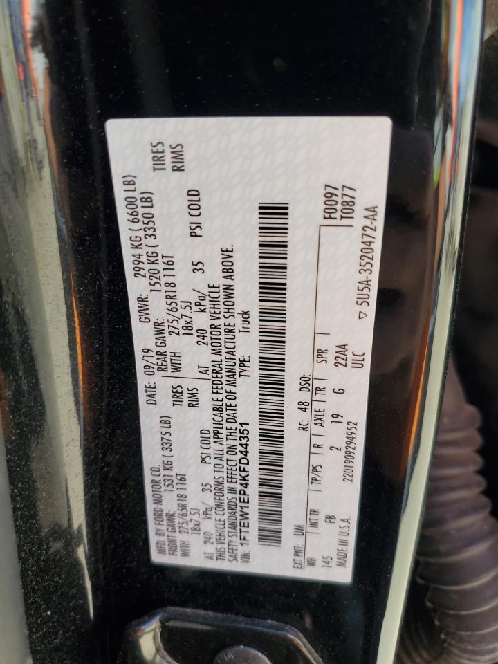 FORD F-150 2.7 2019 г.в., 4x4 с задним приводом (1FTEW1EP4KFD44351) из США